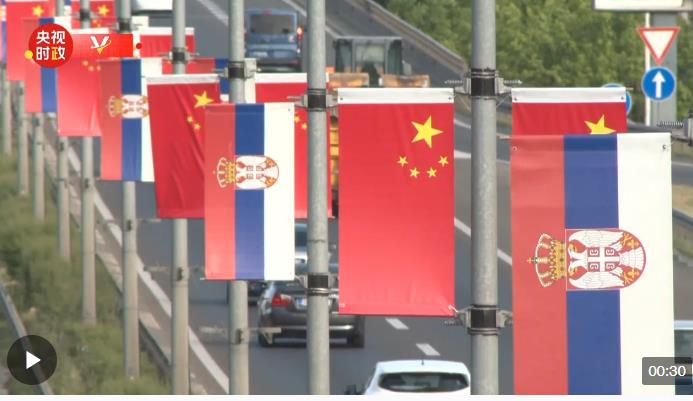 在塞爾維亞首都貝爾格萊德街頭,中塞兩國國旗隨處可見,塞爾維亞各界人士熱切期待習近平主席到訪。