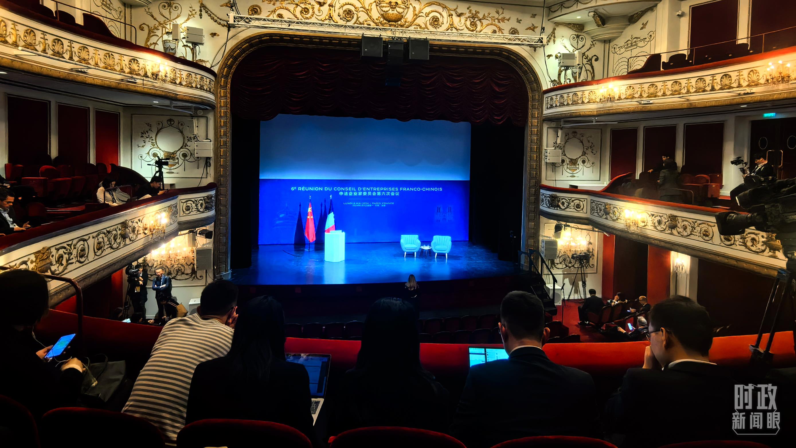 中法企業(yè)家委員會第六次會議閉幕式在馬里尼劇院舉行,這是開始前的現(xiàn)場。(總臺央視記者史偉拍攝)