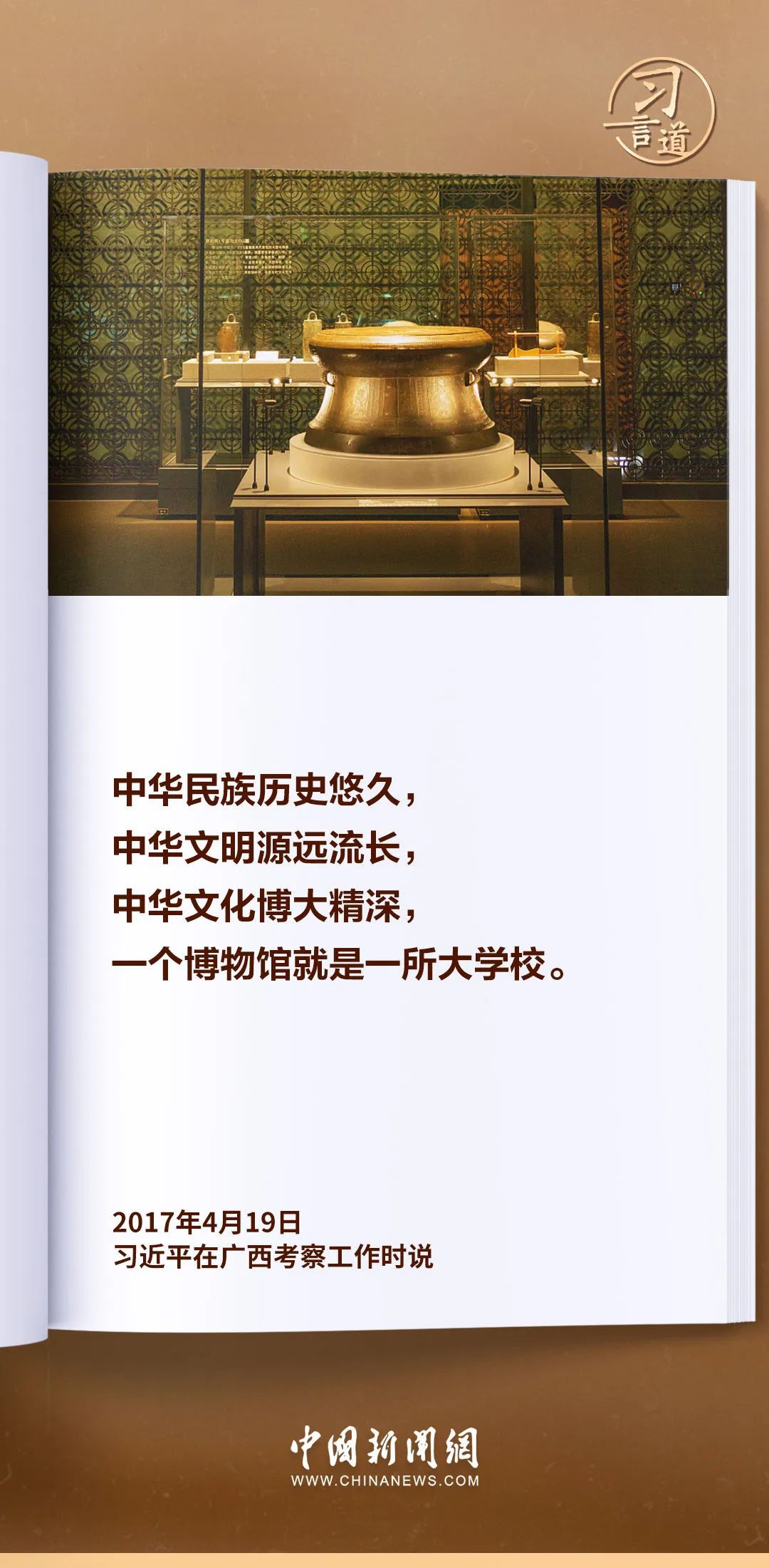 一個(gè)博物館就是一所大學(xué)校。習(xí)近平總書記高度重視博物館工作,多次發(fā)表重要論述,強(qiáng)調(diào)要積極推進(jìn)文物保護(hù)利用和文化遺產(chǎn)保護(hù)傳承。