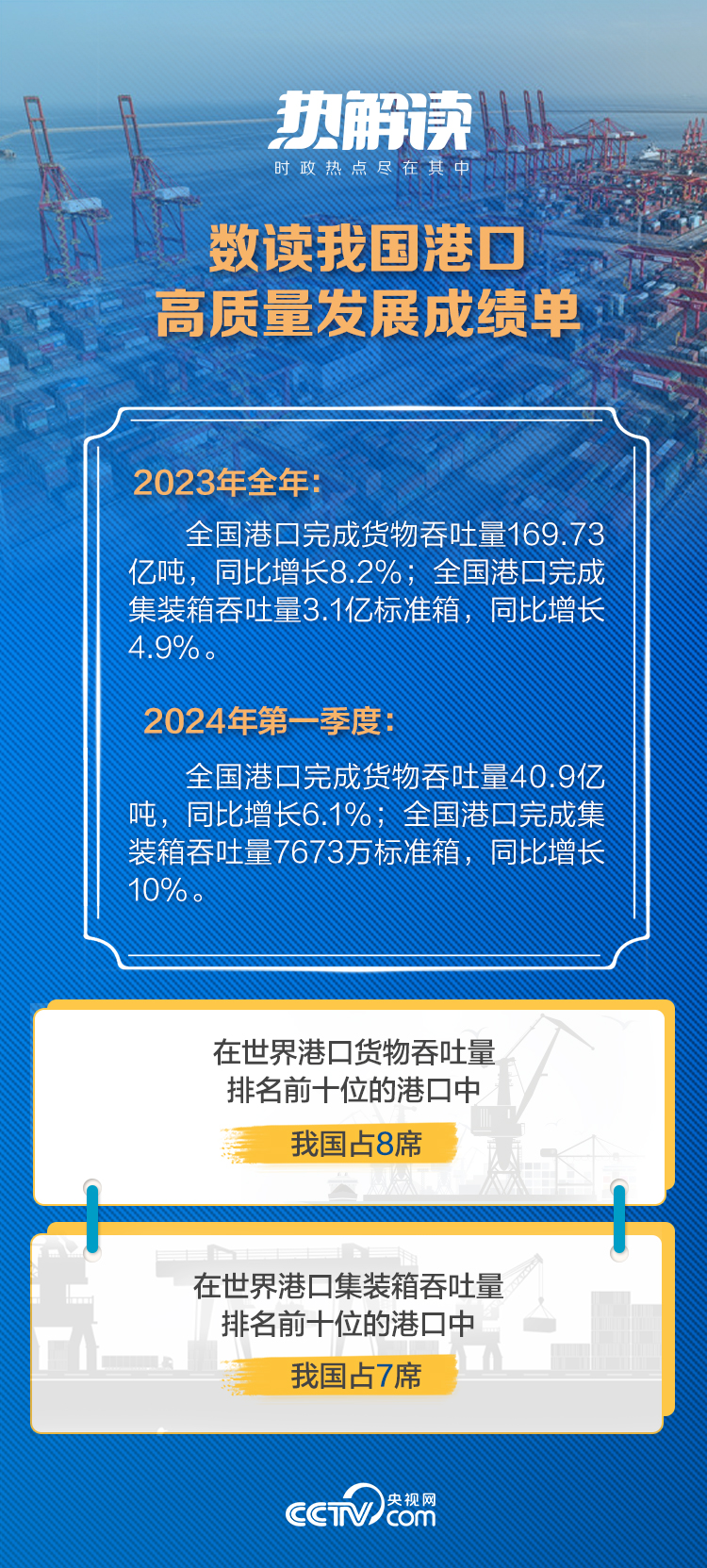 透過港口這扇窗,我們能看到“志在萬里”、向海圖強的戰(zhàn)略定力,也能深刻感受到中國經(jīng)濟(jì)的強大韌勁和旺盛活力。