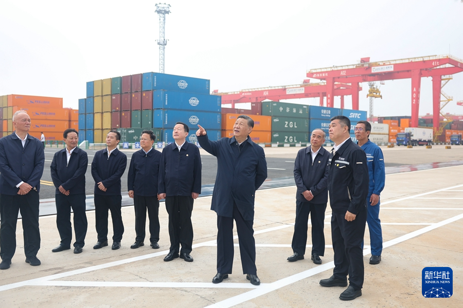 5月22日至24日,中共中央總書(shū)記、國(guó)家主席、中央軍委主席習(xí)近平在山東考察。這是22日下午,習(xí)近平在日照港考察。新華社記者 鞠鵬 攝