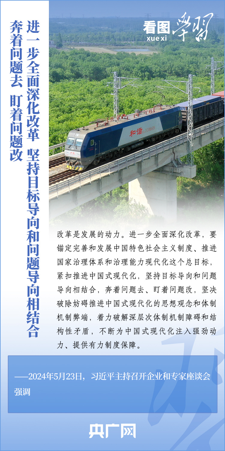 改革是發(fā)展的動(dòng)力。5月23日,習(xí)近平總書(shū)記在山東濟(jì)南主持召開(kāi)企業(yè)和專(zhuān)家座談會(huì)并發(fā)表重要講話(huà)??倳?shū)記強(qiáng)調(diào),進(jìn)一步全面深化改革,要緊扣推進(jìn)中國(guó)式現(xiàn)代化這個(gè)主題,突出改革重點(diǎn),把牢價(jià)值取向,講求方式方法,為完成中心任務(wù)、實(shí)現(xiàn)戰(zhàn)略目標(biāo)增添動(dòng)力。一起來(lái)學(xué)習(xí)!