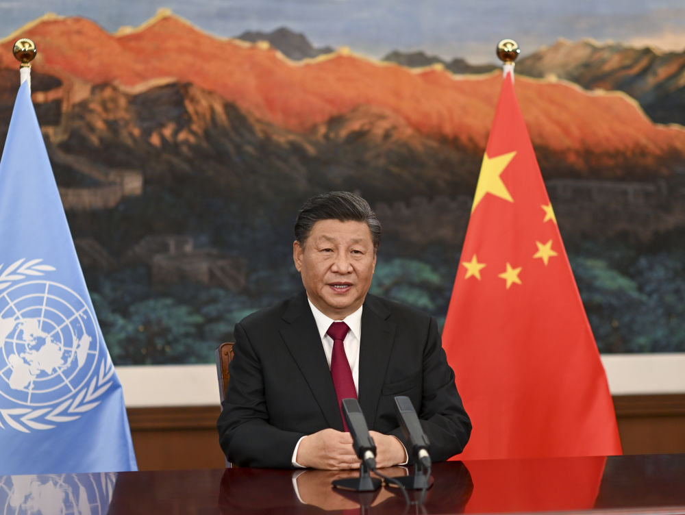 2021年10月12日,習(xí)近平主席以視頻方式出席《生物多樣性公約》第十五次締約方大會領(lǐng)導(dǎo)人峰會并發(fā)表主旨講話。 新華社記者 李學(xué)仁 攝