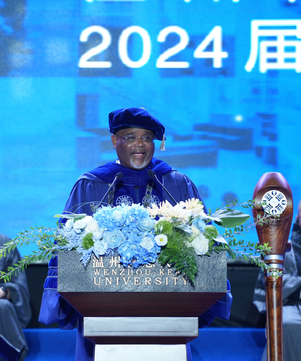 6月7日,美國肯恩大學校長拉蒙·雷波列特在溫州肯恩大學畢業(yè)典禮上致辭。(受訪者供圖)