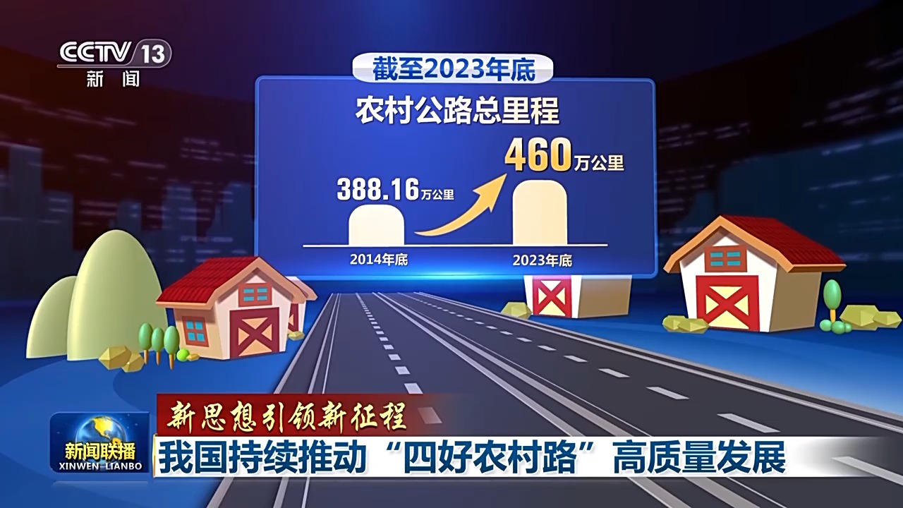 十年來,農(nóng)村公路取得歷史性成就。累計投入農(nóng)村公路建設資金達4.2萬億元,新改建農(nóng)村公路約250萬公里,截至2023年底,農(nóng)村公路總里程從2014年底的388.16萬公里增長到了460萬公里,農(nóng)村公路覆蓋范圍、通達深度、管養(yǎng)水平、服務能力和質(zhì)量安全顯著提高。