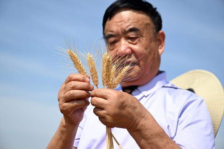 日頭正盛,71歲的種糧大戶徐淙祥深入田間,和農(nóng)技專家們一起為試驗麥種測產(chǎn)。“穗大籽多粒飽滿,又是一個豐收年!”徐淙祥高興地說。