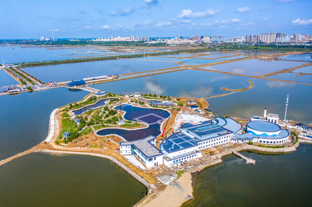 2024年4月30日拍攝的運城鹽湖全面提升改造項目現場(無人機照片)。