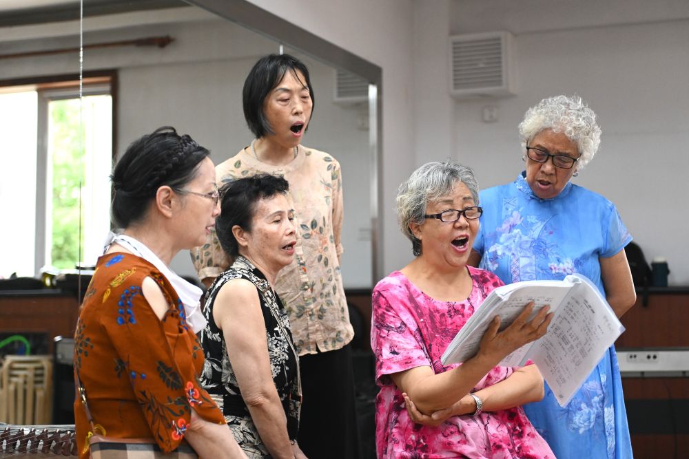 6月20日,寧夏銀川市金鳳區(qū)長城花園社區(qū)居民在練習唱歌。