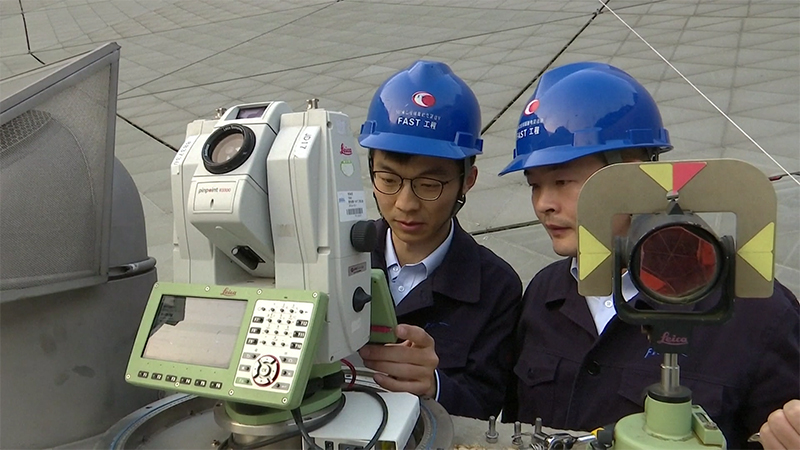 “中國天眼”團(tuán)隊的技術(shù)人員正在操作設(shè)備,開展科研工作。