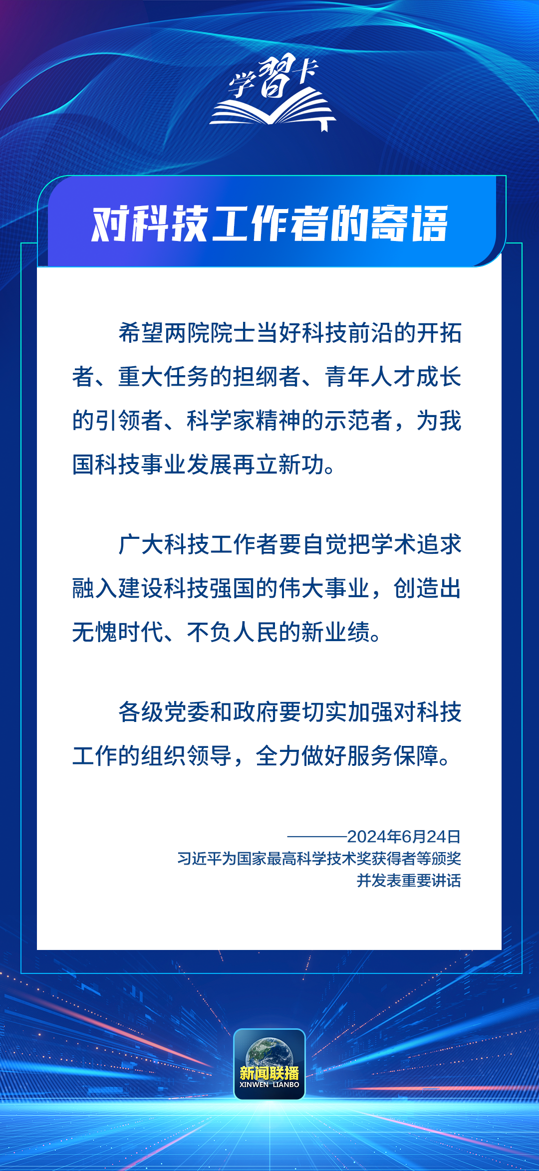 6月24日,中共中央總書(shū)記、國(guó)家主席、中央軍委主席習(xí)近平為國(guó)家最高科學(xué)技術(shù)獎(jiǎng)獲得者等頒獎(jiǎng)并發(fā)表重要講話。