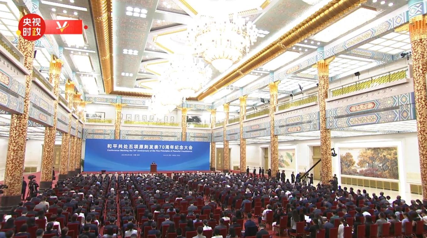 6月28日上午,和平共處五項原則發(fā)表70周年紀念大會在北京人民大會堂隆重舉行。國家主席習近平出席紀念大會并發(fā)表題為《弘揚和平共處五項原則,攜手構(gòu)建人類命運共同體》的重要講話。