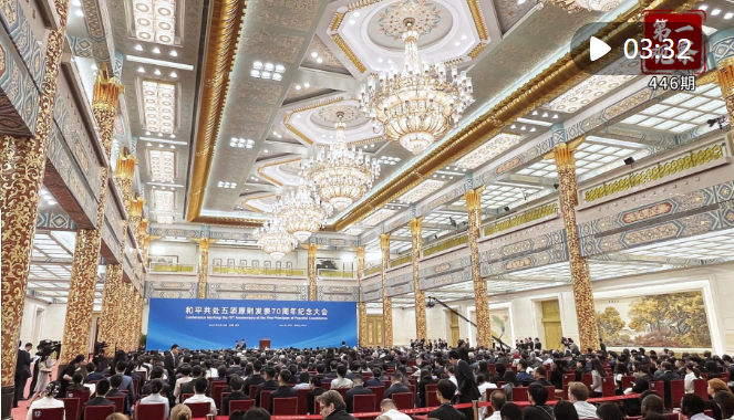 6月28日上午,和平共處五項原則發(fā)表70周年紀念大會在北京人民大會堂金色大廳隆重舉行。國家主席習近平出席紀念大會,并發(fā)表題為《弘揚和平共處五項原則,攜手構建人類命運共同體》的重要講話。