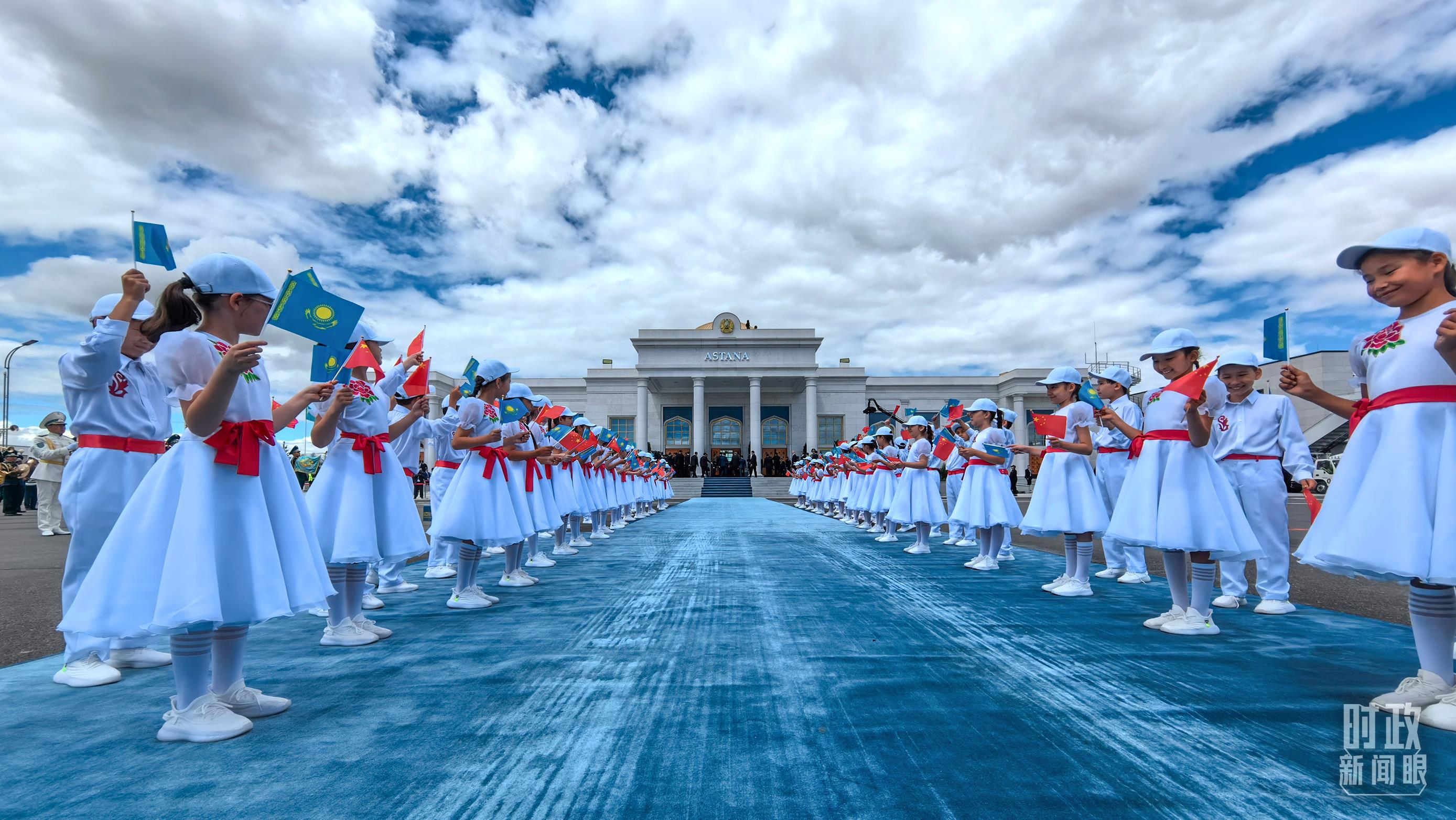 仲夏的阿斯塔納,生機(jī)盎然,遼闊壯美。停機(jī)坪上,天藍(lán)色的地毯,熱情的歡迎人群,傳遞著哈薩克斯坦對(duì)習(xí)主席的真誠(chéng)相迎。