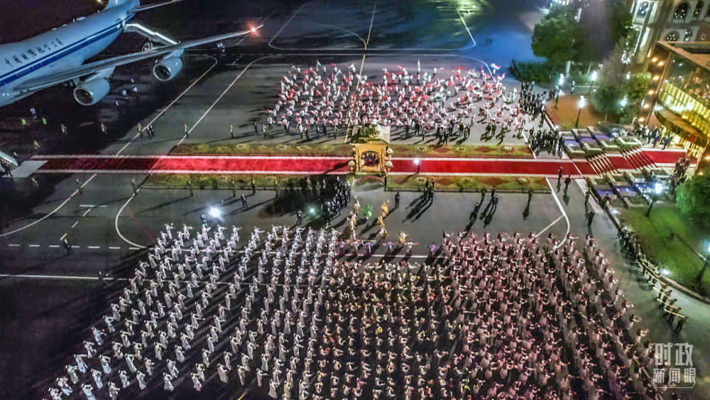 塔方在機場舉行的盛大迎賓儀式。(總臺央視記者邢彬)