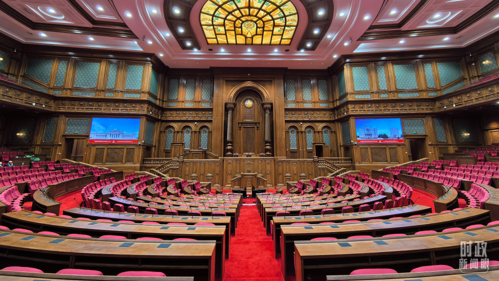 中方援建塔議會大樓內(nèi)的聯(lián)席議會廳。(總臺央視記者陸泓宇拍攝)