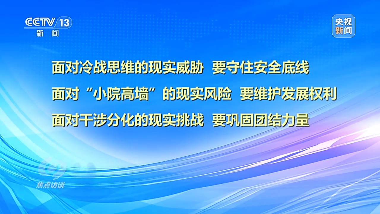 習(xí)近平主席強調(diào),面對新形勢新挑戰(zhàn),上海合作組織應(yīng)做到三個“要”:即面對冷戰(zhàn)思維的現(xiàn)實威脅,要守住安全底線;面對“小院高墻”的現(xiàn)實風(fēng)險,要維護發(fā)展權(quán)利;面對干涉分化的現(xiàn)實挑戰(zhàn),要鞏固團結(jié)力量。努力建設(shè)團結(jié)互信的共同家園、和平安寧的共同家園、繁榮發(fā)展的共同家園、睦鄰友好的共同家園、公平正義的共同家園。