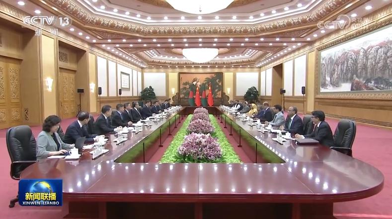 習近平指出,中國和孟加拉國是相知相交的友好近鄰,兩國友好往來綿延千年。建交以來,兩國始終相互尊重、相互支持,平等相待、合作共贏,樹立了國與國之間尤其是“全球南方”國家間友好交往、互利合作的典范。中方珍惜中孟兩國老一輩領(lǐng)導人締造的深厚友誼,愿以明年建交50周年為契機,深化高質(zhì)量共建“一帶一路”,拓展各領(lǐng)域合作深度和廣度,推動中孟全面戰(zhàn)略合作伙伴關(guān)系行穩(wěn)致遠。