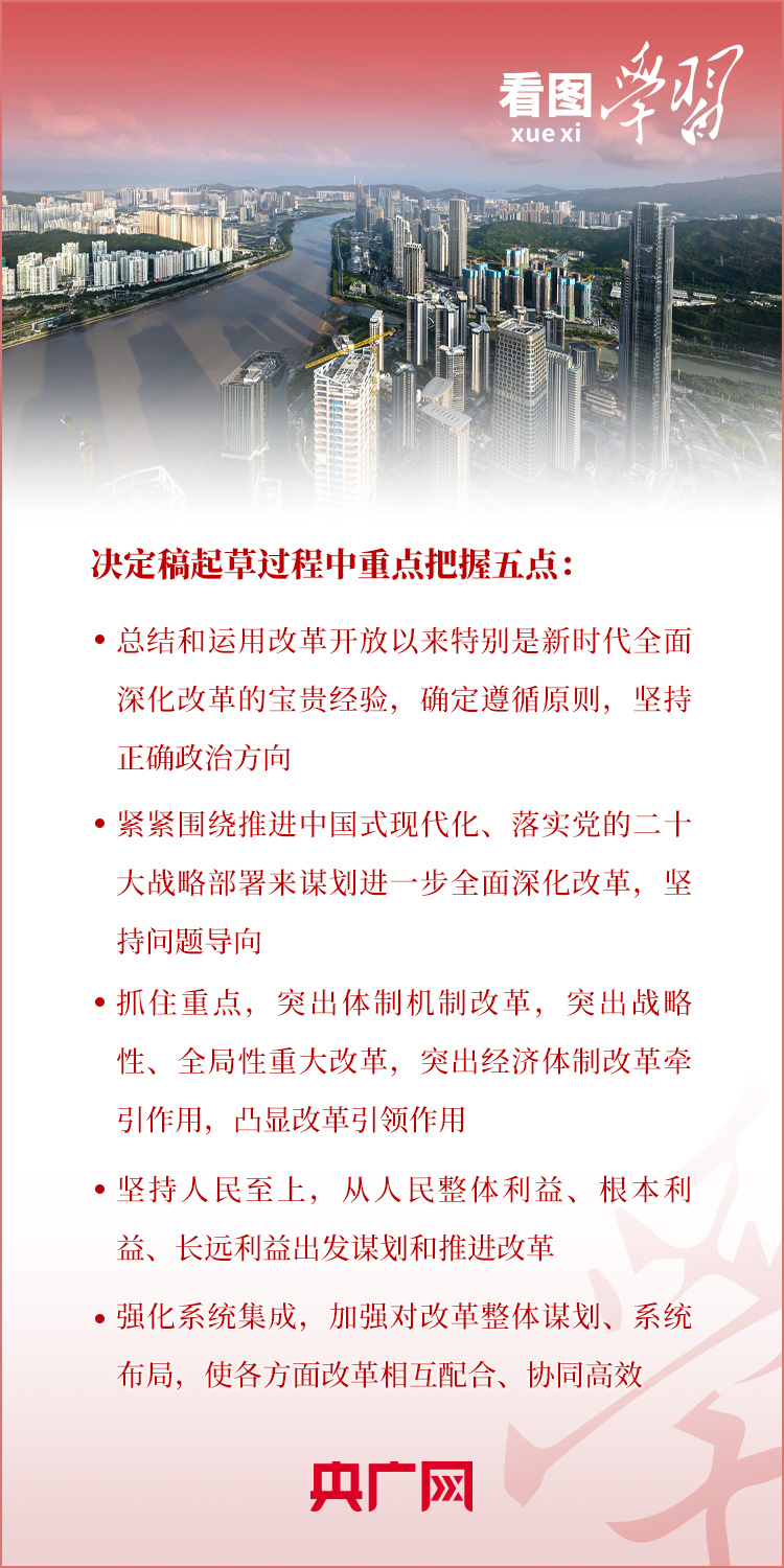 從征求和確定全會(huì)議題到起草文件、深入調(diào)查研究、廣泛征求意見、開展專題論證、反復(fù)討論修改,習(xí)近平總書記指出,決定稿錨定2035年基本實(shí)現(xiàn)社會(huì)主義現(xiàn)代化目標(biāo),重點(diǎn)部署未來(lái)五年的重大改革舉措?!拔鍌€(gè)注重”成為《決定》內(nèi)容擺布鮮明特點(diǎn)。一起來(lái)學(xué)習(xí)!