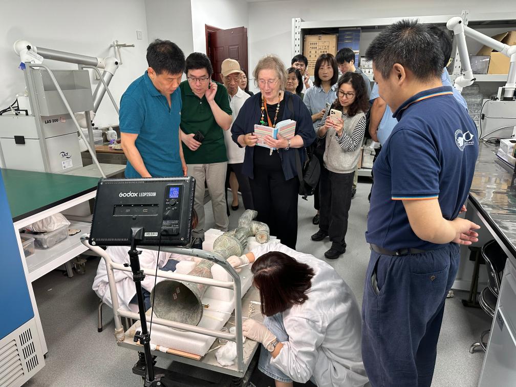 2024年5月28日,英國考古學(xué)家、牛津大學(xué)教授杰西卡·羅森在文物保護修復(fù)實驗室觀摩文物。新華社發(fā)(四川省文物考古研究院供圖)