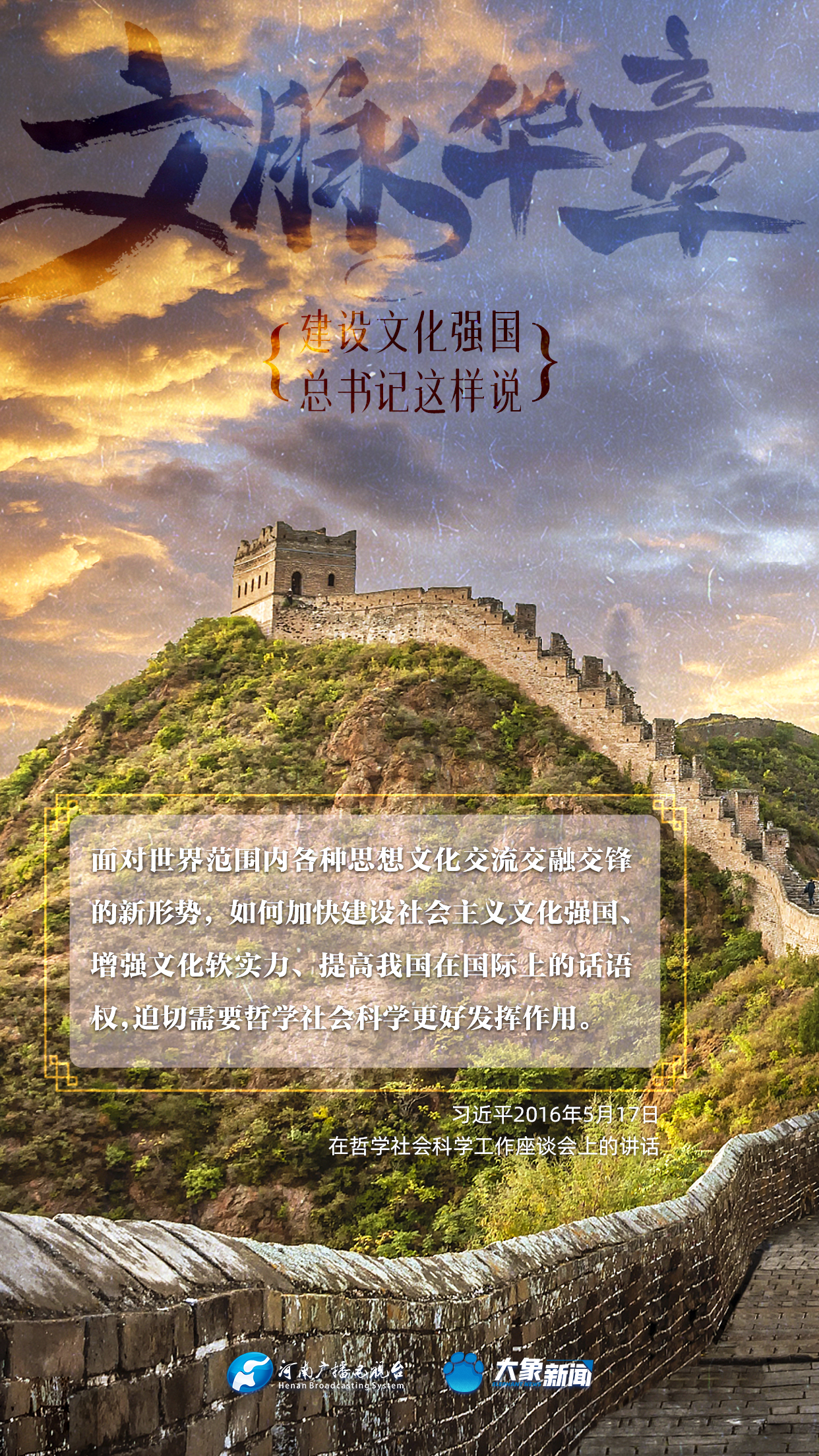 黨的十八大以來,習(xí)近平總書記站在全局和戰(zhàn)略高度,就建設(shè)社會主義文化強(qiáng)國提出一系列新思想新觀點新論斷,為我們堅定文化自信,堅持中國特色社會主義文化發(fā)展道路,提供了指引。大象新聞與您一起學(xué)習(xí)、領(lǐng)悟。