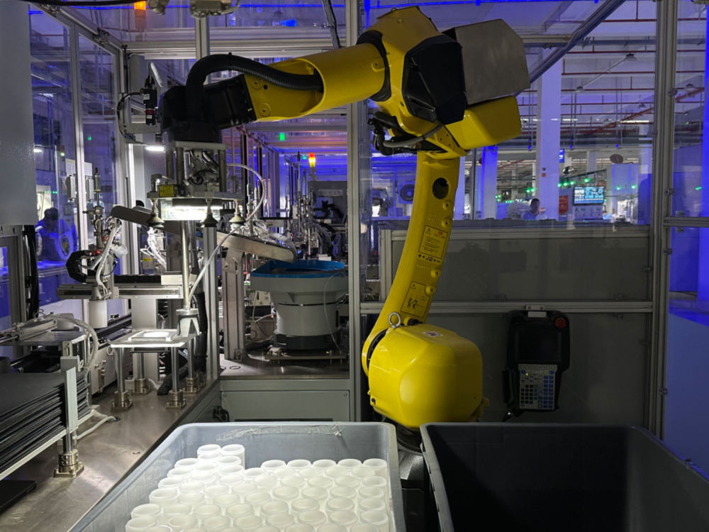 南安一家衛(wèi)浴企業(yè)生產(chǎn)線(xiàn)上,機(jī)械臂正在給智能馬桶蓋板涂層刷圈。(受訪(fǎng)者供圖)