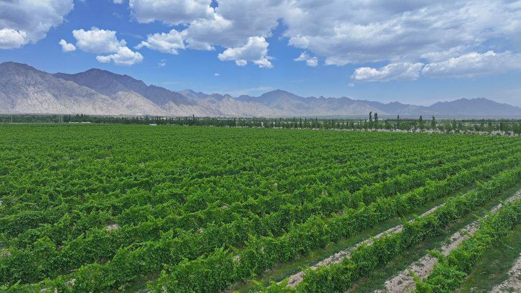 如今,昔日“干沙灘”閩寧村已變?yōu)椤敖鹕碁遍}寧鎮(zhèn)。從一顆葡萄到酒香盈袖,閩寧鎮(zhèn)實(shí)現(xiàn)了葡萄酒生產(chǎn)流程全面布局。當(dāng)?shù)蒯劸破咸逊N植面積達(dá)到7.5萬畝,農(nóng)戶種植葡萄畝均增收3000元以上。葡萄酒特色產(chǎn)業(yè)開拓了群眾增收致富新渠道。