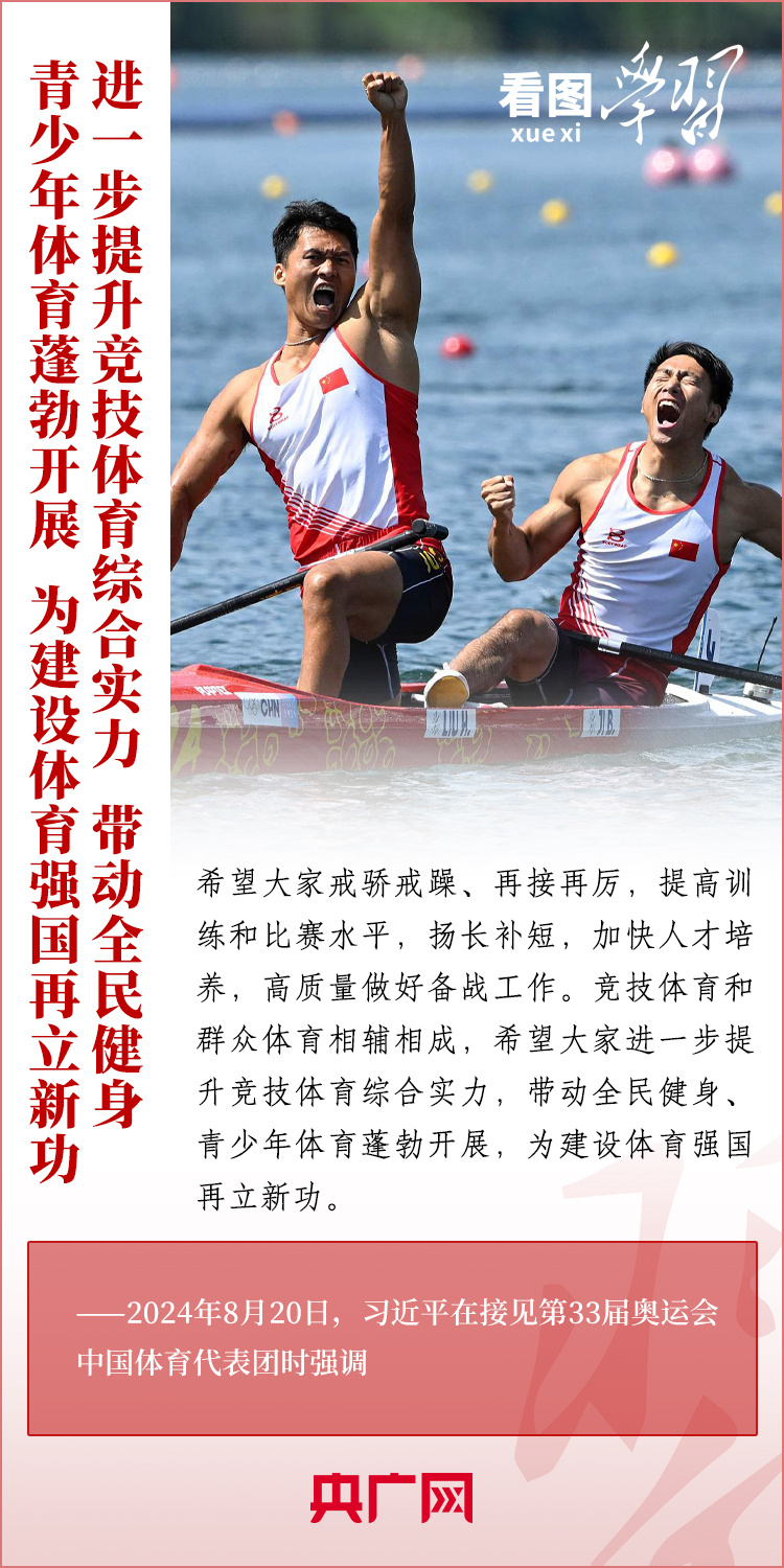 “祖國和人民為你們驕傲,為你們點贊。”8月20日,習(xí)近平總書記在人民大會堂接見第33屆奧運會中國體育代表團并發(fā)表重要講話??倳浉叨瓤隙ㄖ袊w育代表團取得的優(yōu)異成績,贊揚他們充分彰顯了新時代中國力量、生動詮釋了新時代中國精神、充分展現(xiàn)了新時代中國形象,勉勵大家戒驕戒躁、再接再厲,為建設(shè)體育強國再立新功。一起來學(xué)習(xí)!