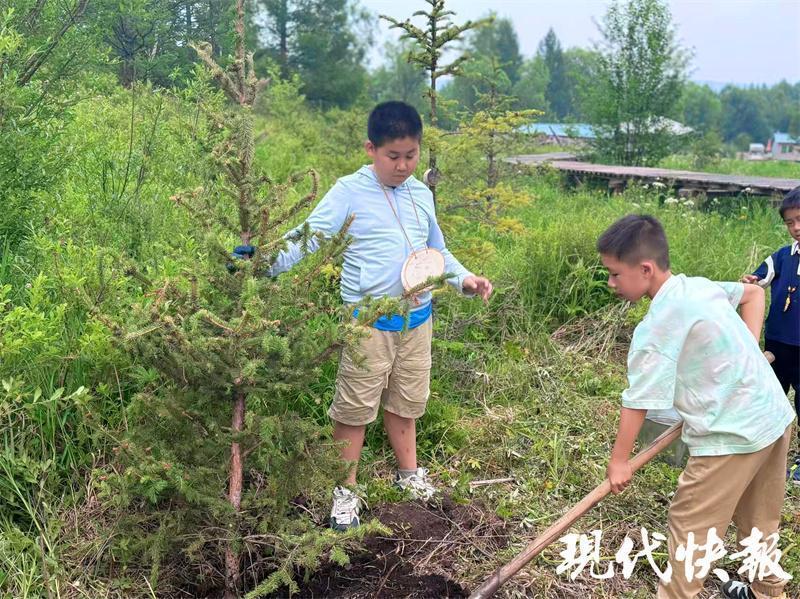 這樣的美麗風(fēng)景讓第一次來到大草原的周云昊很興奮。“我們從當(dāng)?shù)亓私獾?,這是一代又一代人努力的結(jié)果,讓我們也深切感受到生態(tài)保護(hù)的重要性?!毖袑W(xué)途中,周云昊和小伙伴們還專門在當(dāng)?shù)亓謭龇N下一棵樹?!跋M芙】甸L大,成為守護(hù)綠色草原的小衛(wèi)士?!?/p>