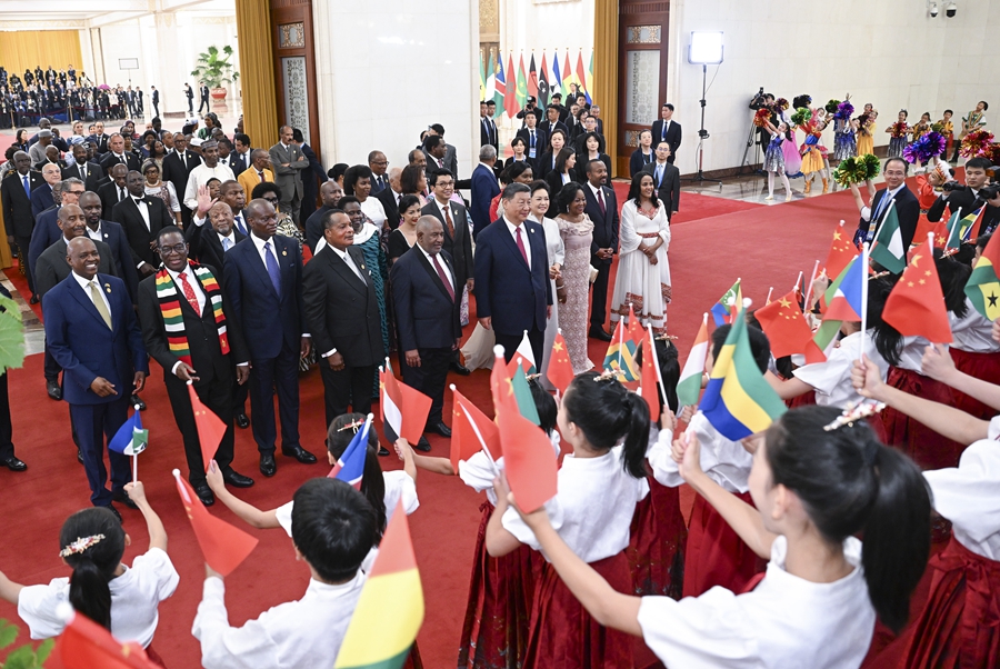 9月的北京,秋高氣爽。雄偉的人民大會堂內(nèi),中國國旗和中非合作論壇成員國國旗以及非洲聯(lián)盟旗幟交相輝映。