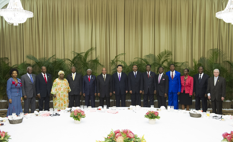 圖為2013年3月28日,國家主席習近平在南非德班同非洲國家領導人早餐會合影。新華社發(fā)