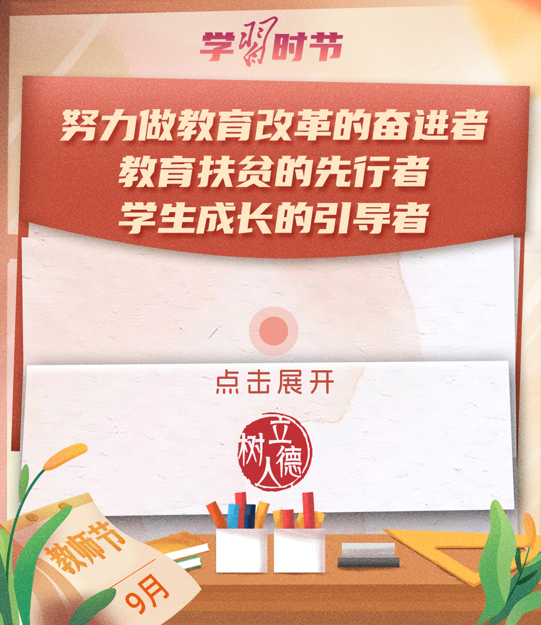 “百年大計(jì),教育為本。教育大計(jì),教師為本?!秉h的十八大以來(lái),習(xí)近平總書(shū)記多次以書(shū)信形式向教師群體和教育工作者表達(dá)囑托與期望,諄諄話語(yǔ),催人奮進(jìn)。在第四十個(gè)教師節(jié)到來(lái)之際,讓我們一起重溫總書(shū)記的諄諄寄語(yǔ)!