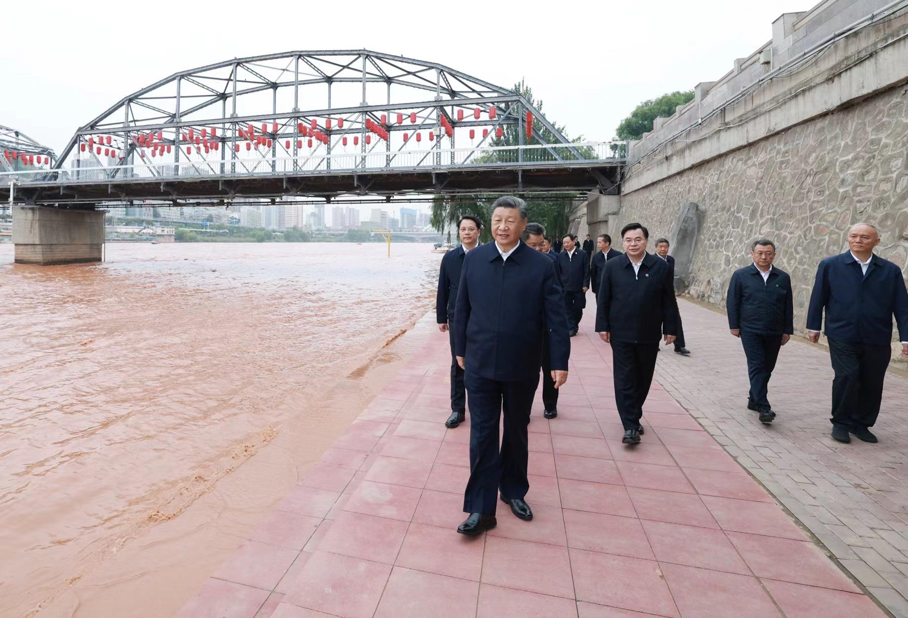 9月11日下午,甘肅蘭州市黃河蘭州中山橋段,習(xí)近平總書記了解當(dāng)?shù)赝苿狱S河流域生態(tài)保護(hù)等情況。