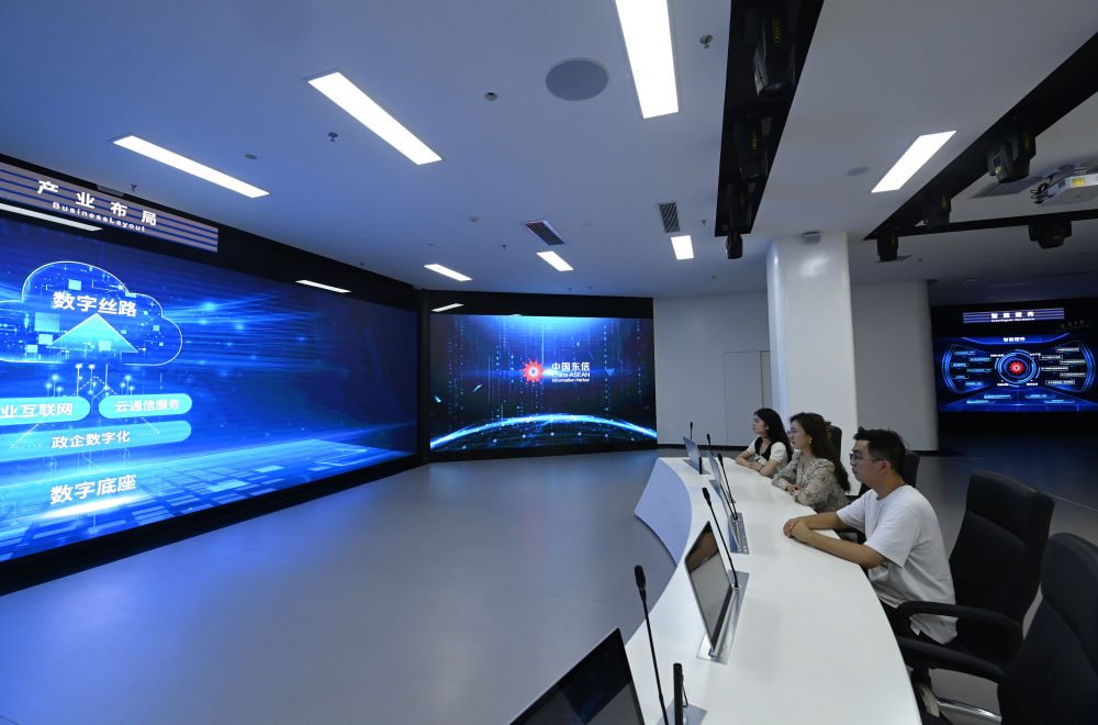 2023年12月12日拍攝的中國-東盟信息港股份有限公司內(nèi)景。歷經(jīng)多年建設,中國-東盟信息港正努力打造面向東盟的國際通信大通道、大數(shù)據(jù)資源應用服務大樞紐、新一代信息技術應用示范高地、數(shù)字經(jīng)濟開放合作集聚區(qū)和人文交流合作中心。