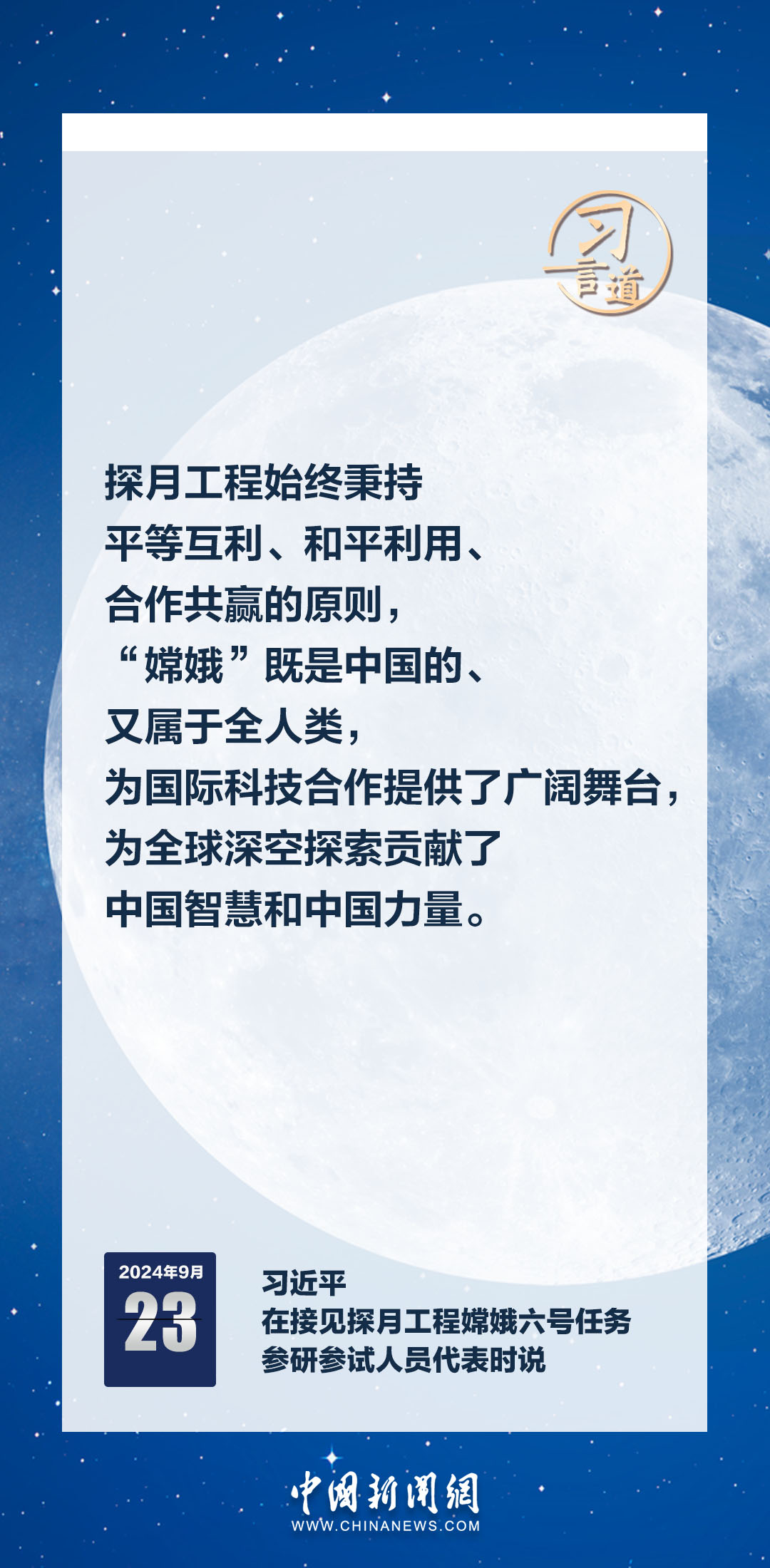 中共中央總書記、國家主席、中央軍委主席習近平23日在人民大會堂接見探月工程嫦娥六號任務參研參試人員代表時發(fā)表重要講話。習近平指出——