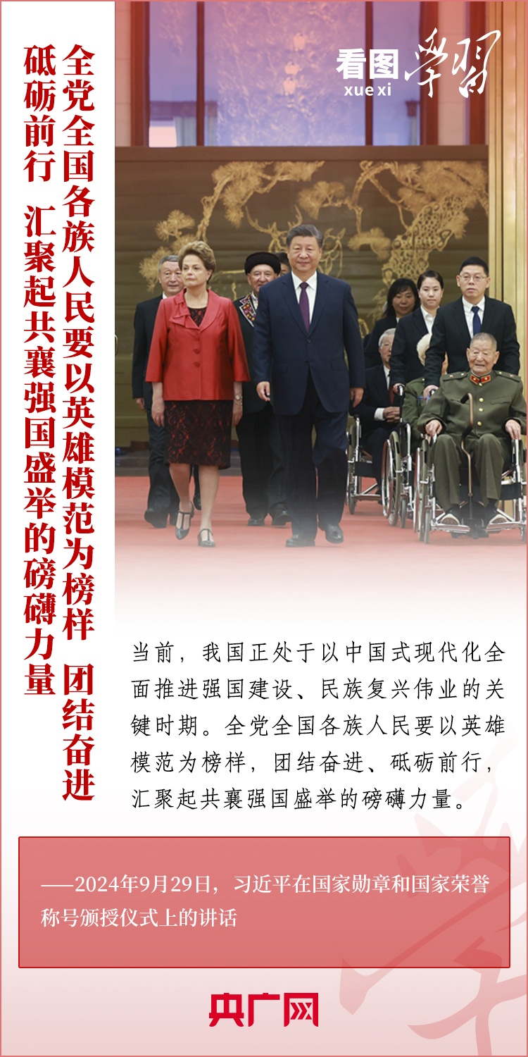 9月29日,中華人民共和國國家勛章和國家榮譽稱號頒授儀式在北京舉行,習近平總書記向國家勛章和國家榮譽稱號獲得者頒授勛章獎?wù)虏l(fā)表重要講話??倳洀娬{(diào),全黨全國各族人民要以英雄模范為榜樣,團結(jié)奮進、砥礪前行,匯聚起共襄強國盛舉的磅礴力量。一起來學(xué)習!