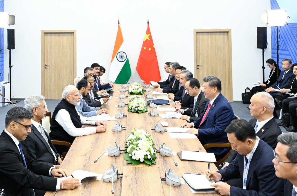 習(xí)近平在出席會晤期間會見印度總理莫迪。