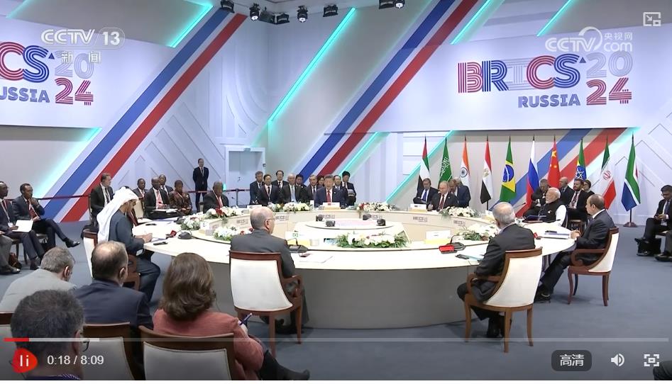 當(dāng)?shù)貢r(shí)間10月23日上午,金磚國(guó)家領(lǐng)導(dǎo)人第十六次會(huì)晤在喀山會(huì)展中心舉行。俄羅斯總統(tǒng)普京主持會(huì)晤。中國(guó)國(guó)家主席習(xí)近平、巴西總統(tǒng)盧拉(線(xiàn)上)、埃及總統(tǒng)塞西、埃塞俄比亞總理阿比、印度總理莫迪、伊朗總統(tǒng)佩澤希齊揚(yáng)、南非總統(tǒng)拉馬福薩、阿聯(lián)酋總統(tǒng)穆罕默德等出席。