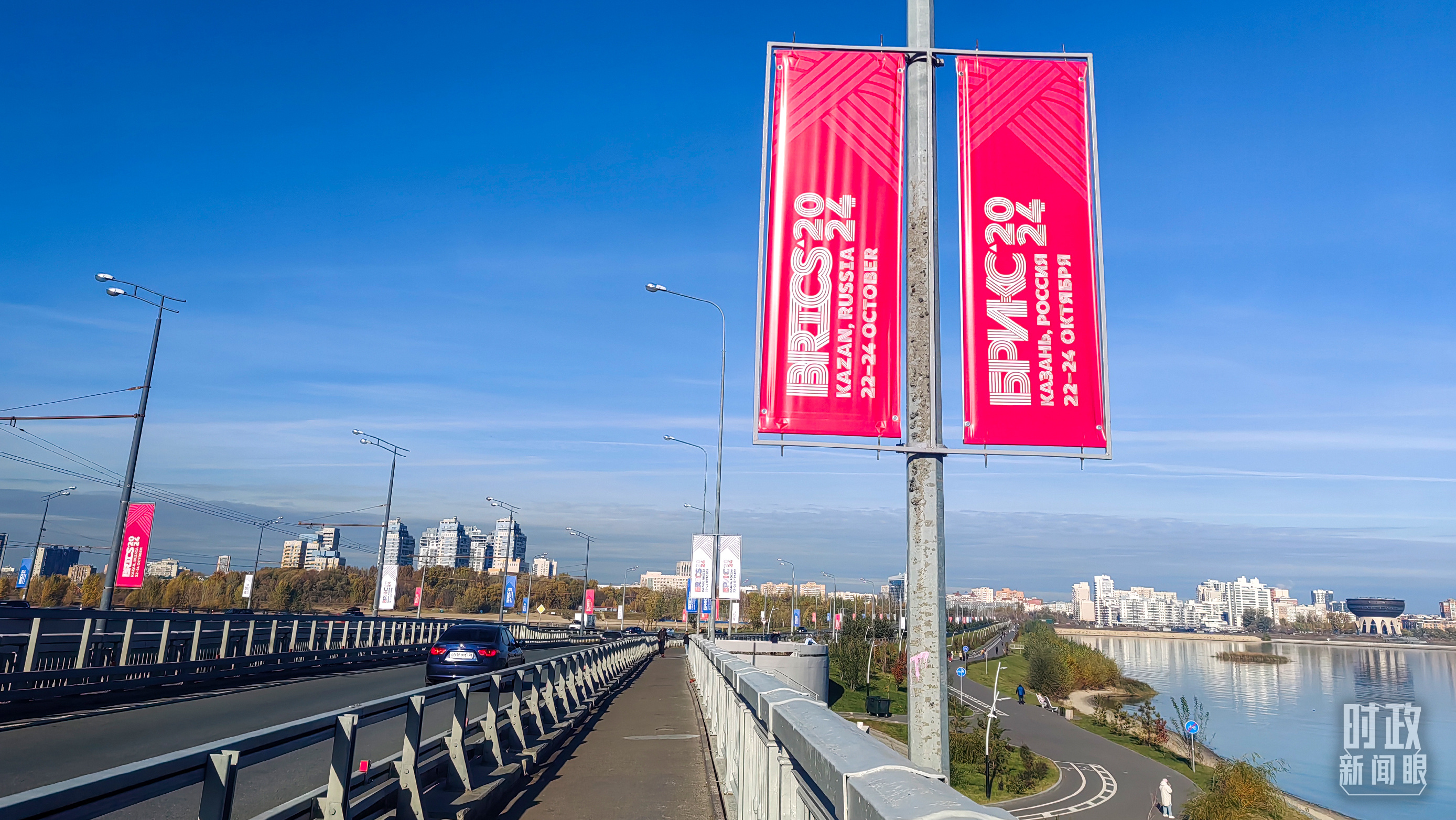 俄羅斯喀山街頭的金磚元素。(總臺(tái)央視記者王萌萌拍攝)