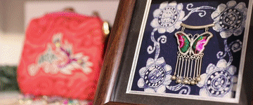 紅、綠、藍(lán)、黃……飛針走線(xiàn)五彩繽紛;繡、插、點(diǎn)、挑……制作手法千變?nèi)f化;龍鳳紋、魚(yú)鳥(niǎo)紋、蝴蝶紋……刺繡圖紋寓意豐富。
