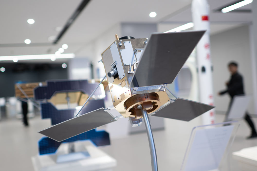 這是在“武創(chuàng)院”展出的“珞珈三號(hào)01星”模型。新華社記者 肖藝九 攝