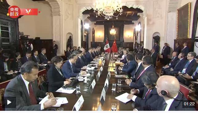 當?shù)貢r間11月14日下午,國家主席習(xí)近平在利馬總統(tǒng)府同秘魯總統(tǒng)博魯阿爾特舉行會談。