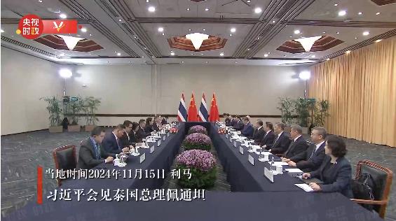 當(dāng)?shù)貢r間11月15日,國家主席習(xí)近平在利馬出席亞太經(jīng)合組織領(lǐng)導(dǎo)人非正式會議期間會見泰國總理佩通坦。