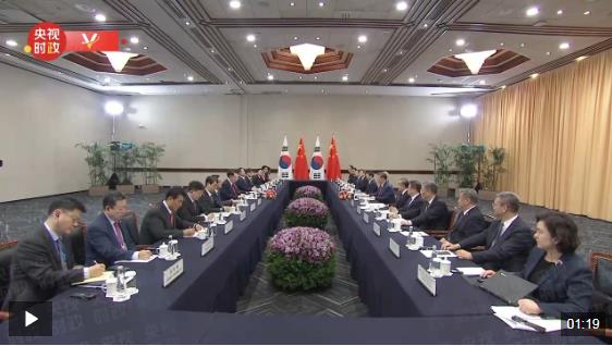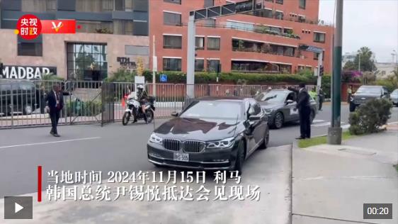 當(dāng)?shù)貢r間11月15日,國家主席習(xí)近平在利馬出席亞太經(jīng)合組織領(lǐng)導(dǎo)人非正式會議期間會見韓國總統(tǒng)尹錫悅。