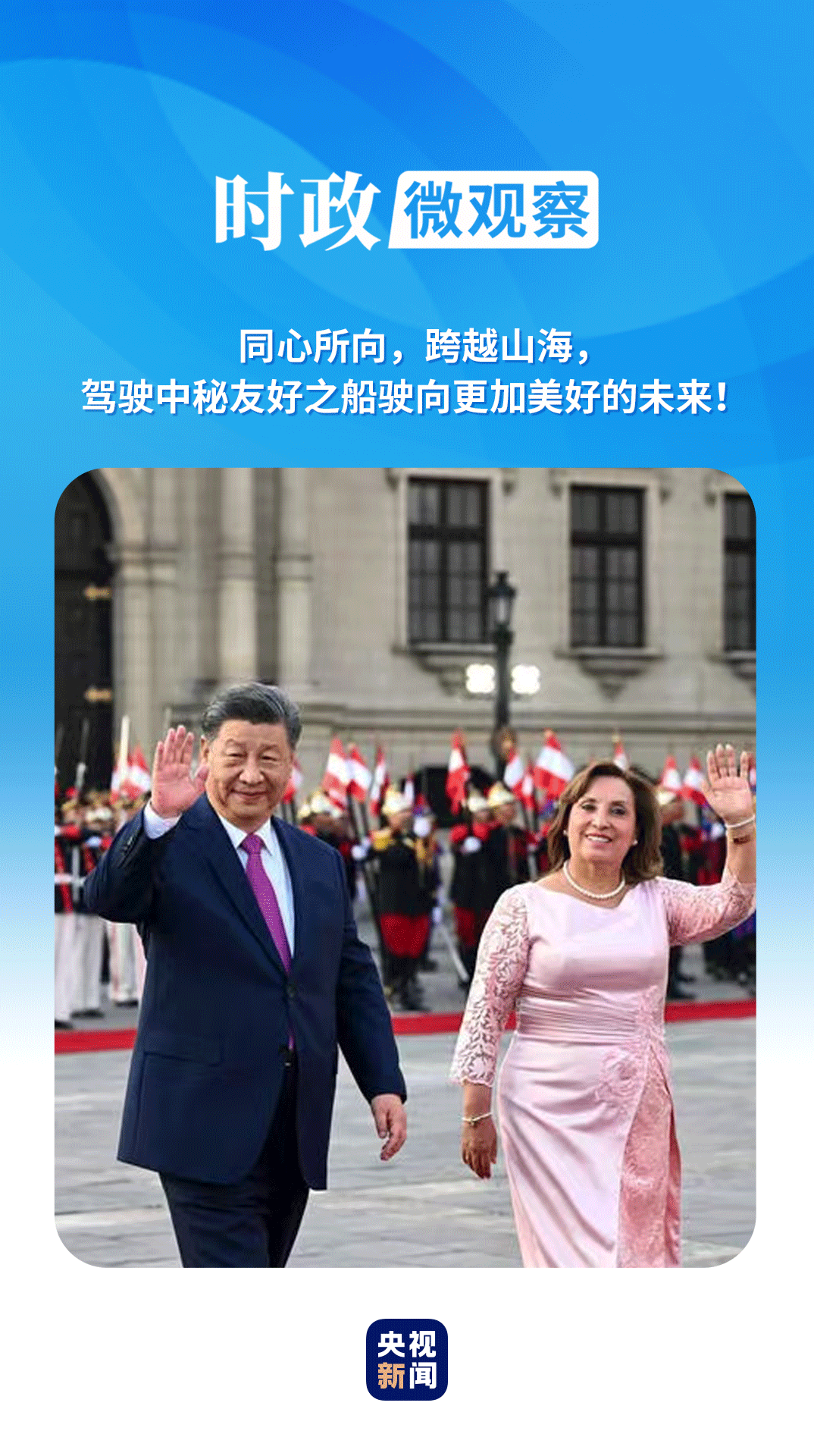 此次訪問(wèn)秘魯,習(xí)近平主席和博魯阿爾特總統(tǒng)就中秘關(guān)系、各領(lǐng)域務(wù)實(shí)合作以及共同關(guān)心的國(guó)際和地區(qū)問(wèn)題深入交換意見(jiàn),引領(lǐng)中秘全面戰(zhàn)略伙伴關(guān)系再上新臺(tái)階,推動(dòng)兩國(guó)各領(lǐng)域務(wù)實(shí)合作取得更多新成果。