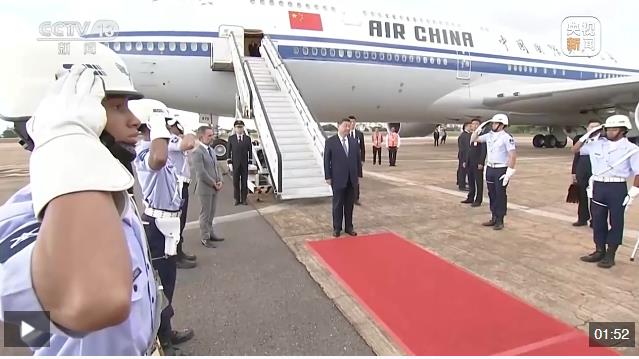 當地時間11月19日下午,國家主席習近平乘專機抵達巴西利亞,開始對巴西進行國事訪問。