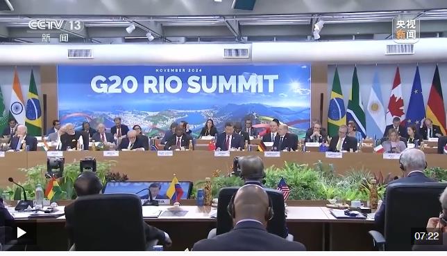 當(dāng)天,G20領(lǐng)導(dǎo)人第十九次峰會在里約熱內(nèi)盧現(xiàn)代藝術(shù)博物館開幕。峰會主題是“構(gòu)建公正的世界和可持續(xù)的星球”,重點聚焦全球不平等、抗擊饑餓與貧困、可持續(xù)發(fā)展和全球治理改革等議題。