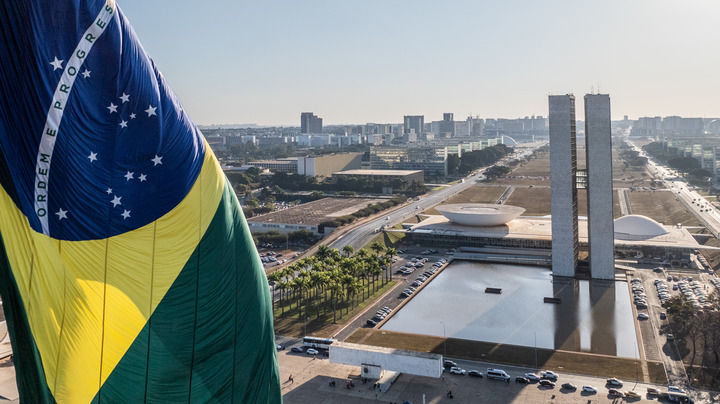 這是2024年7月16日在巴西首都巴西利亞拍攝的國會(huì)大廈(無人機(jī)照片)。 新華社記者 王天聰 攝