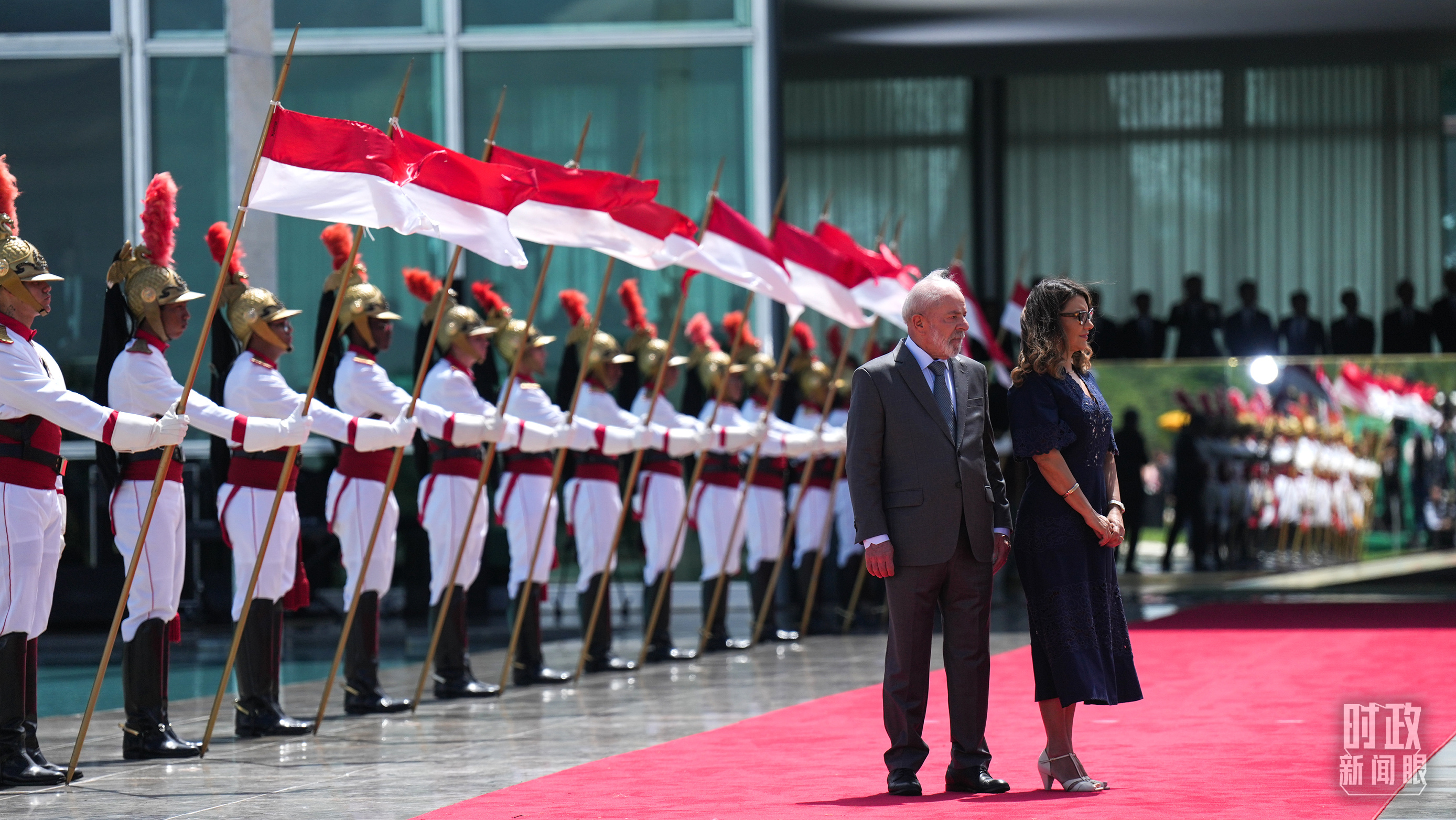 巴西總統(tǒng)盧拉和夫人羅桑等候習(xí)主席到來(lái)。