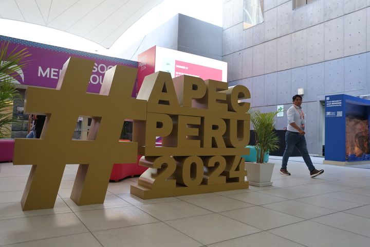 這是11月8日在秘魯利馬拍攝的2024年亞太經(jīng)濟(jì)合作組織(APEC)會議標(biāo)識。新華社記者 許睿 攝