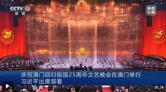 鏡海揚帆風(fēng)正勁,濠江歡歌向未來。慶祝澳門回歸祖國25周年文藝晚會19日晚在澳門東亞運動會體育館舉行。中共中央總書記、國家主席、中央軍委主席習(xí)近平觀看了演出。